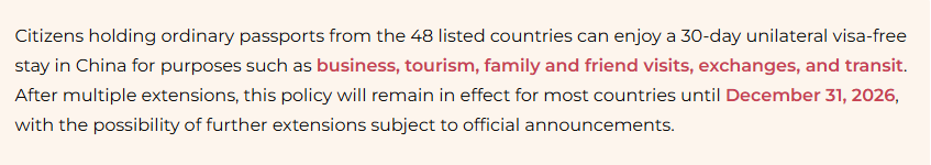 Read more about China’s unilateral visa-free entry policy: China Expands Unilateral Visa-Free Policy to 9 Additional Countries Including Japan, Extends Stay to 30 Days