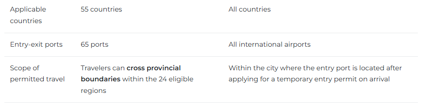 Eligible travelers can only apply for the 240-hour visa-free transit if they enter through one of the 60 designated ports. In addition, travelers are only allowed to travel within a certain area on the entry permit and exit the country through designated ports as well. People who travel outside the permitted area and exit the country through a non-designated port may face certain penalties.